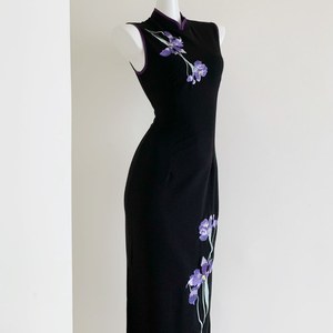 【兰妃娘2.0】东方美学国风紫色刺绣复古黑色显瘦修身港工女旗袍