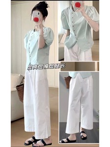 夏装搭配一整套大码胖mm遮肉显瘦衬衫阔腿裤时尚减龄气质两件套装