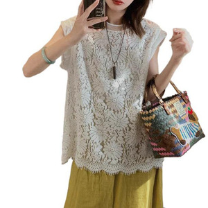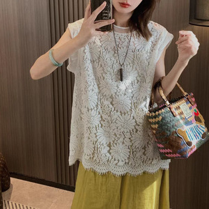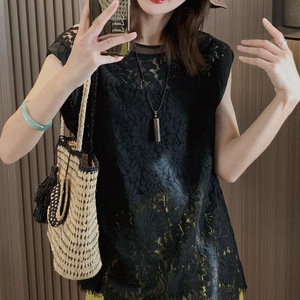 女性のための黒のフレンチノースリーブレースシャツ 2025 新しい夏のシャツ、軽い高級感と美しいトップ