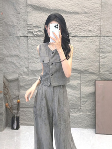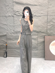 ファッションスーツ女性の夏の 2025 新しいスリムハイエンドベストシャツトップカジュアルワイドレッグパンツ 2 点セット