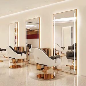 ネットセレブ新店舗ミラーテーブルフロアミラー理髪店ライト付き両面片面ヘアカットヘアサロン専用一体型LED