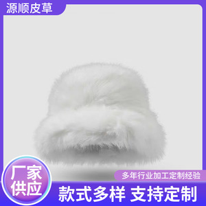 现货韩版百搭仿狐狸毛女毛绒纯色护耳大帽檐加厚渔夫帽加厚保暖