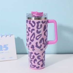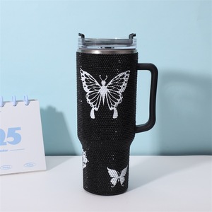 跨境卡通贴钻304不锈钢保温杯40oz手柄汽车杯车载保冷吸管冰霸杯