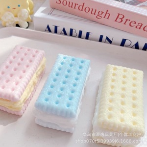 ネットで話題の越境人気商品、サンドイッチ型のソーダビスケット。握っても超柔らかく、ゆっくり戻る。見た目も素敵で、ストレス解消に最適な玩具です。