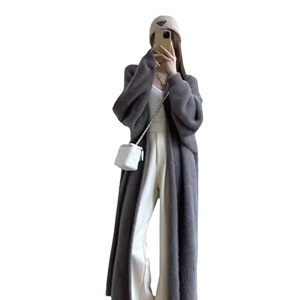 慵懒风长款过膝仿水貂绒毛衣外套女宽松秋冬复古纯色针织开衫大衣