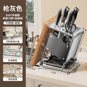 アップグレードされた傾斜ナイフホルダーステンレススチール + ガングレー + まな板ホルダー