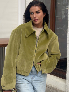 ヨーロッパとアメリカのホットガール無地レトロ植毛ジッパージャケット女性の初秋の新しい気質ウエストラペルトップ