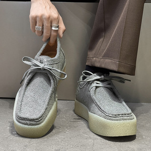 レトロカジュアルカンガルーシューズメンズ厚底増加カジュアル快適な多用途ボードシューズ 54415 グレー-J
