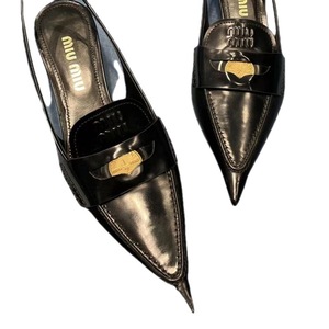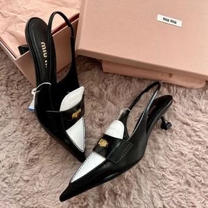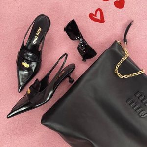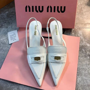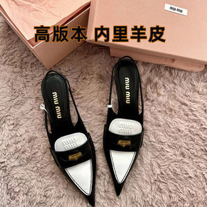 高精細版~ミュウミュウ ゴールドコイン ポインテッドトゥ キャットヒール サンダル レディース 2025 新作 浅口 レトロ 包頭 ハイヒール