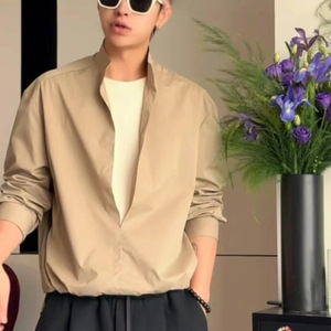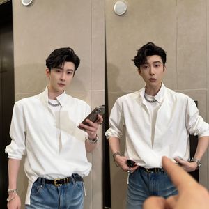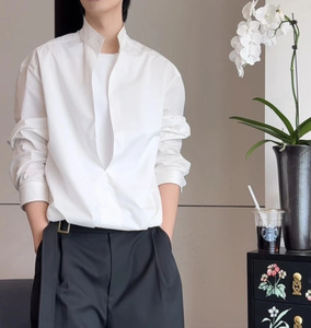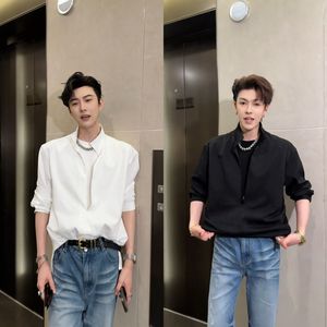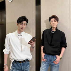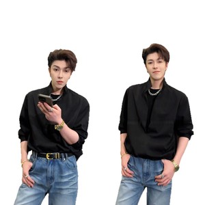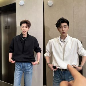 龙刀刀夏季新款潮流双层假两件设计小众圆领T恤百搭宽松长袖衬衫