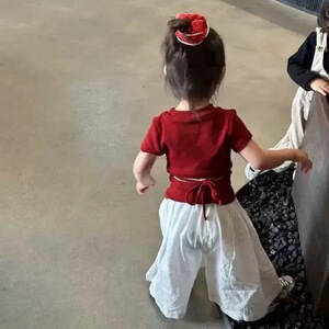 宝宝时髦百搭正肩T恤女童设计感上衣儿童韩系短袖夏季新款
