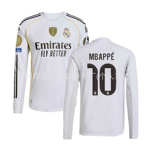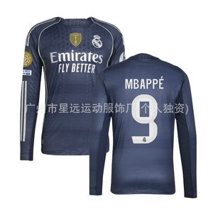 卸売 25/26 レアル マドリード クリュピュール ジャージ長袖ホームとアウェイ ムバッペ ベリンガム サッカー ユニフォーム プレーヤー バージョン