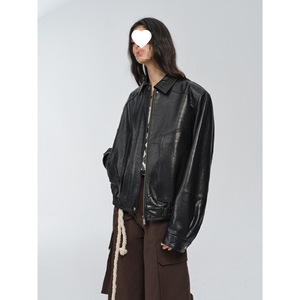|时髦录客|Y*S杨树林油蜡绵羊皮真皮皮衣复古工装松紧夹克外套女
