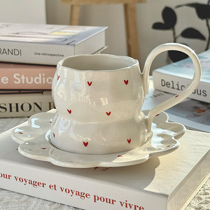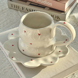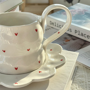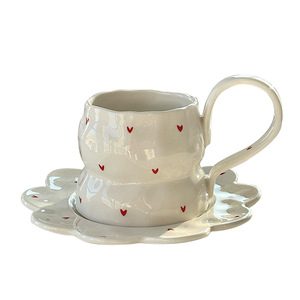 クロスボーダー高価値インセラミックアフタヌーンティーセットかわいい手絞り模様赤い愛コーヒーカップとソーサーセラミックカップ