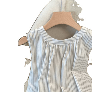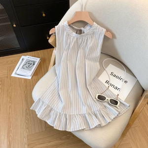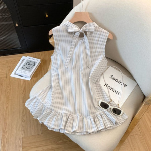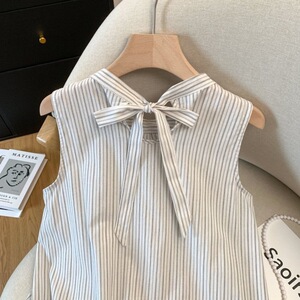 女性のためのストライプノースリーブホルターネックシャツ 2025 夏の新しいスタイルのリボンタイ耳スカートルーズトップ女性のための