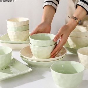 釉下彩石纹4.7英寸10个轻奢家用好看奶油风米饭碗高颜值质量好厚