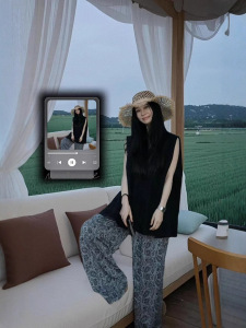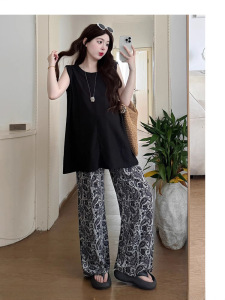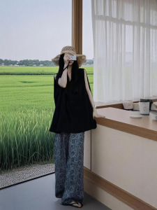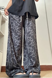 レトロなカシューフラワーのコットンとリネンのパンツ、夏の薄いレイジースタイルのプリントカジュアルパンツ、ファッショナブルでエレガントなルーズフロアレングスパンツ