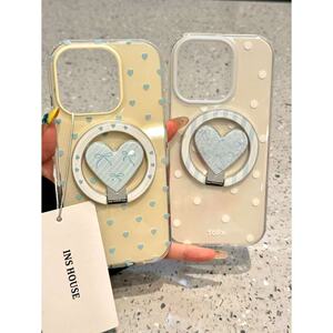 ins蓝白条纹爱心磁吸支架适用iphone16promax苹果15pro手机壳14