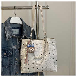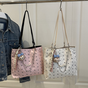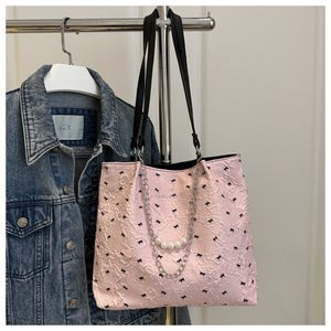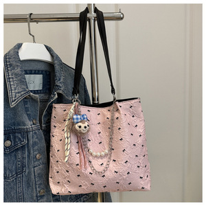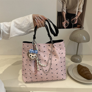 韩系少女泡泡纱蝴蝶结托特包大容量简约时尚单肩包学生上课通勤包