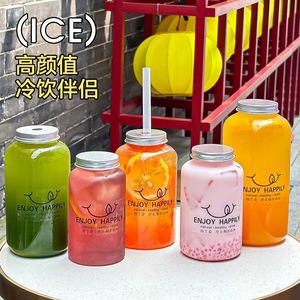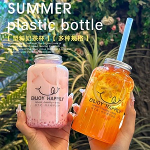 网红奶茶杯一次性带盖胖胖杯U形饮料圆肩瓶透明果茶瓶素匠泰茶杯