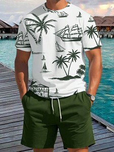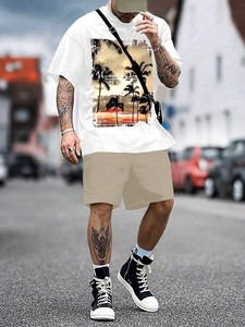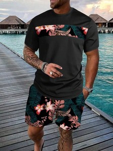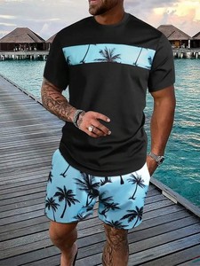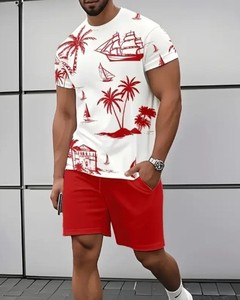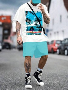 跨境欧美时尚T恤短裤卡通字母印花夏季新款街头宽松休闲嘻哈套装