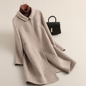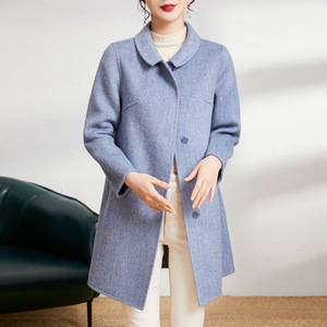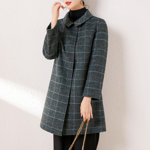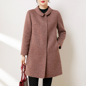 2025秋季新款千鸟格大码女装妈妈装双面羊毛毛呢大衣外套胖mm女