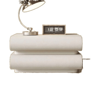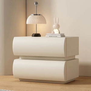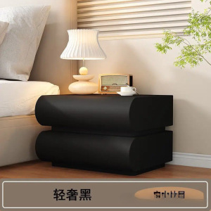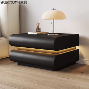 卧室家用网红奶油白色带灯床头柜意式皮质黑色实木床边收纳储物柜
