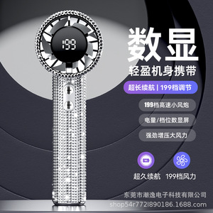 国境を越えた新しいホットスタイルハンドヘルドダイヤモンド高速小型ファンデジタルディスプレイポータブル199スピード高速トレンディ小型ファン