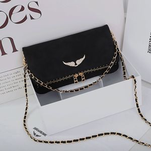 2025年新作フランス製ファッションZVバッグ、ダイヤモンド付きウィングチェーン、レディース封筒型バッグ、カジュアルレトロショルダーバッグ
