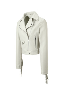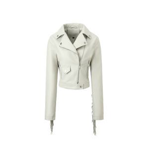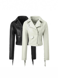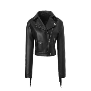 欧美女式PU皮衣短款翻领流苏外套修身显瘦机车Jacket春季新款