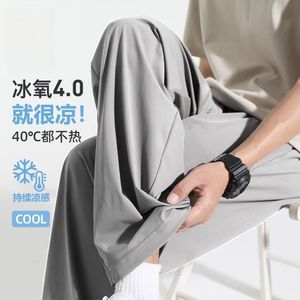 冰丝垂感弹力阔腿裤男夏季新款潮流宽松大码薄款速干休闲直筒长裤