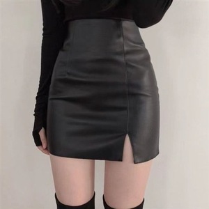 黑色开叉小皮裙半身裙女秋季新款紧身高腰包臀显瘦一步裙PU皮短裙