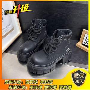 Yuechen マーティンブーツ レディース 2025 秋冬新作 厚底 ルバーブブーツ 英国風 ベルベット 小柄 身長アップ ショートブーツ