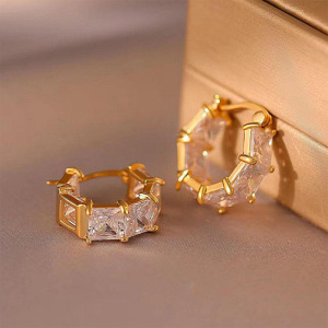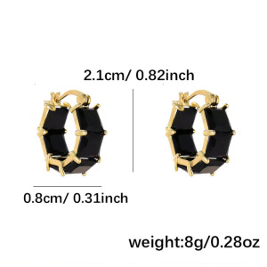 跨境欧美高级感耳扣时尚百搭黑色晶锆耳圈独特小众设计气质耳饰