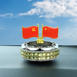 ソーラーカーオーナメント 5つ星の小さな赤い旗回転アロマオーナメント 車の装飾回転小さな赤い旗アロマセラピーシート