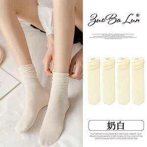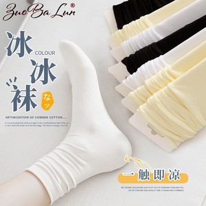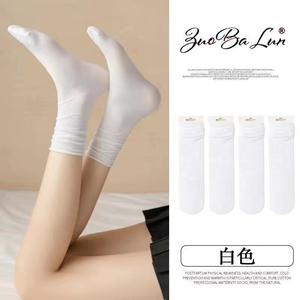 夏季薄款冰冰袜糖果色黑白长筒jk袜日系中筒学生潮流天鹅绒堆堆袜