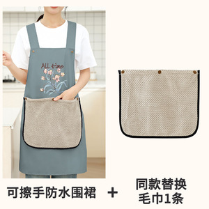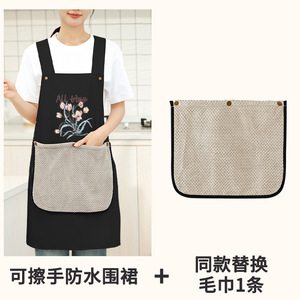 手で拭ける取り外し可能な大型タオルエプロン防水耐油キッチン家庭用2025新しいハイエンドの若いスタイルのエプロン