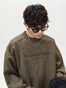 400 グラム分割ステッチレトロラウンドネックスウェットシャツメンズ秋ヘビーテクスチャープルオーバーアメリカンレタープリントジャケット