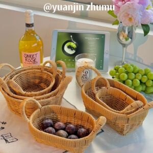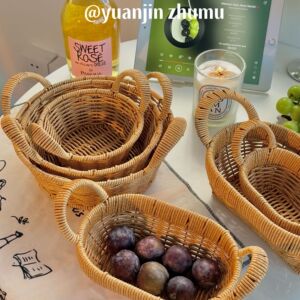 Yuanjin フルーツバスケット リビングルーム用 模造籐編み 家庭用雑貨バスケット 大型収納バスケット キッチン野菜と果物の洗浄と水切り