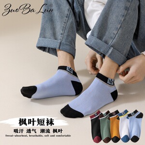 袜子男士短袜ins潮流枫叶船袜夏季薄款吸汗透气运动袜低帮浅口袜