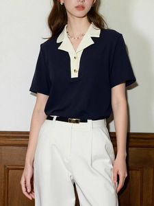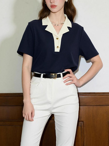 2025 夏のハイエンドコントラストカラーポロカラー半袖 Tシャツ女性のファッションスリム通気性トップ