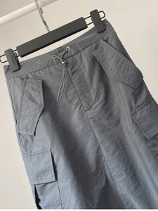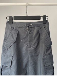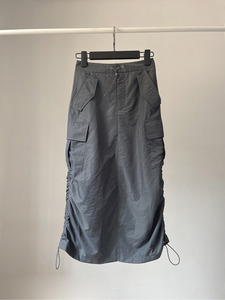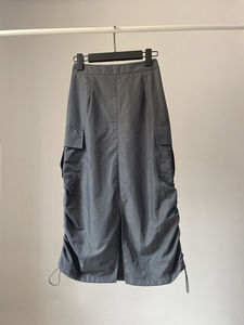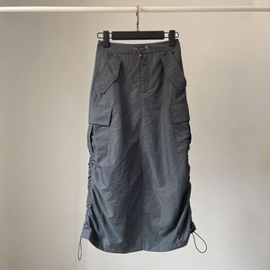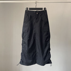 ホットガール速乾性プリーツ巾着ワークスカート女性の夏アメリカンレトロルーズカジュアルバックスリットミドル丈スカート