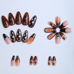 ヨーロッパとアメリカのアーモンド型ウェアラブルネイル Y2K マニキュアブラックスマッジヒョウ柄レトロ不規則なフレンチフェイクネイル