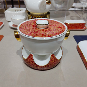 ホテルクラブ高級ボーンチャイナ食器セット金縁満堂紅お祝い宴会誕生日皿セット