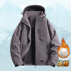 秋と冬のスポーツコットンコートフード付きジャケットメンズプラスサイズアウトドアコットンコートレディース厚く暖かい防風カジュアルベルベットジャケット