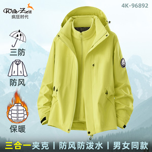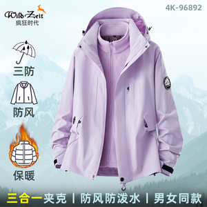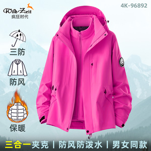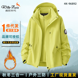Luo Duo のカップル用スリーインワンジャケット、アウトドアハイキングジャケット、レディース防風ジャケット、メンズ取り外し可能な登山ジャケット