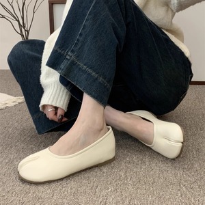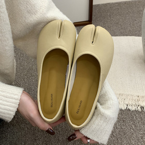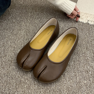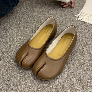 内增高分趾猪蹄单鞋女春季新款软皮奶奶鞋子厚底一脚蹬马蹄豆豆鞋