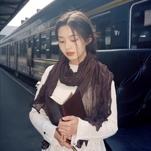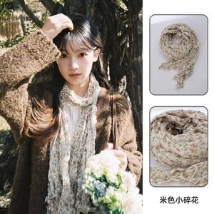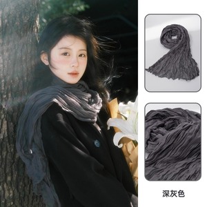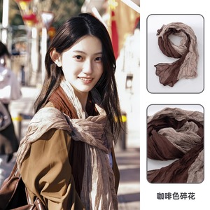 女性用レトロコットンとリネンスカーフ、春と夏、薄い、芸術的なブラウン、ヴィンテージ、プリーツ、日焼け止め、ストリップシルクスカーフ、ネック周りの雰囲気
