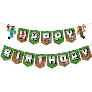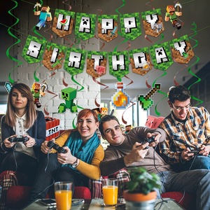 新しい Minecraft 誕生日パーティー装飾バナーゲームテーマピクセルバトル誕生日装飾スパイラルペンダント