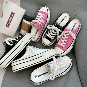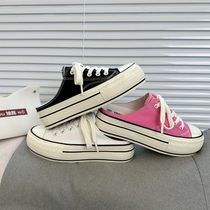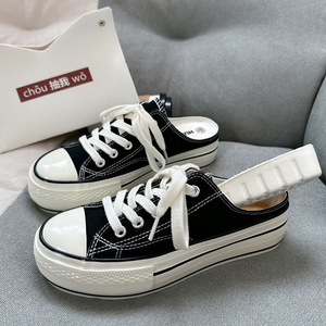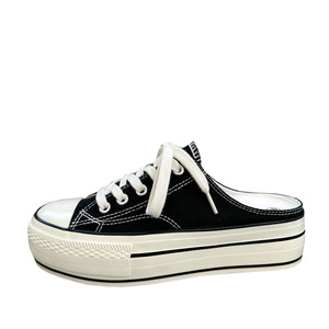 女性のための光沢のあるオイルキャンバスシューズ 2025 夏韓国語版イン厚底 5 センチメートル多用途ハーフスリッパ学生カジュアルスポーツトレンディな靴